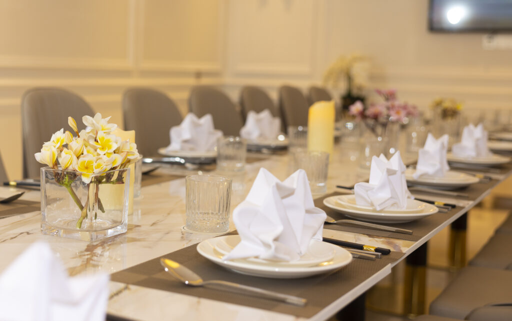 Đội ngũ nhân viên chuyên nghiệp, năng động và giàu kinh nghiệm của chúng tôi sẽ điều chỉnh từng chi tiết theo nhu cầu của bạn, từ dịch vụ ăn uống đẳng cấp thế giới đến hoạt động giải trí được lên kế hoạch cẩn thận. Tất cả những gì bạn cần làm là nâng ly lên và thưởng thức khoảnh khắc này. Để đặt trước hoặc có thêm thông tin về các sự kiện, vui lòng liên hệ với chúng tôi.